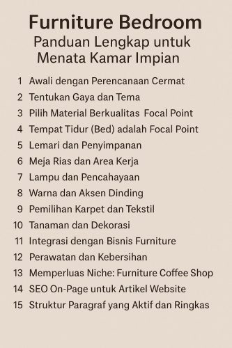 Jika Anda baru memulai, pelajari panduan lengkap memulai bisnis furnitur berdasarkan target pasar seperti yang dibahas di furniture: jenis usaha apa? panduan lengkap memulai bisnis furnitur berdasarkan target pasar.